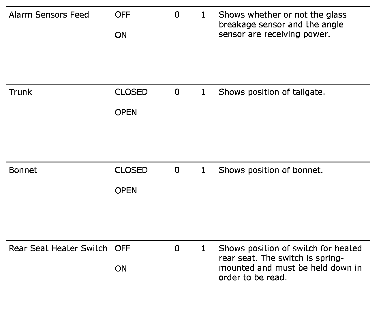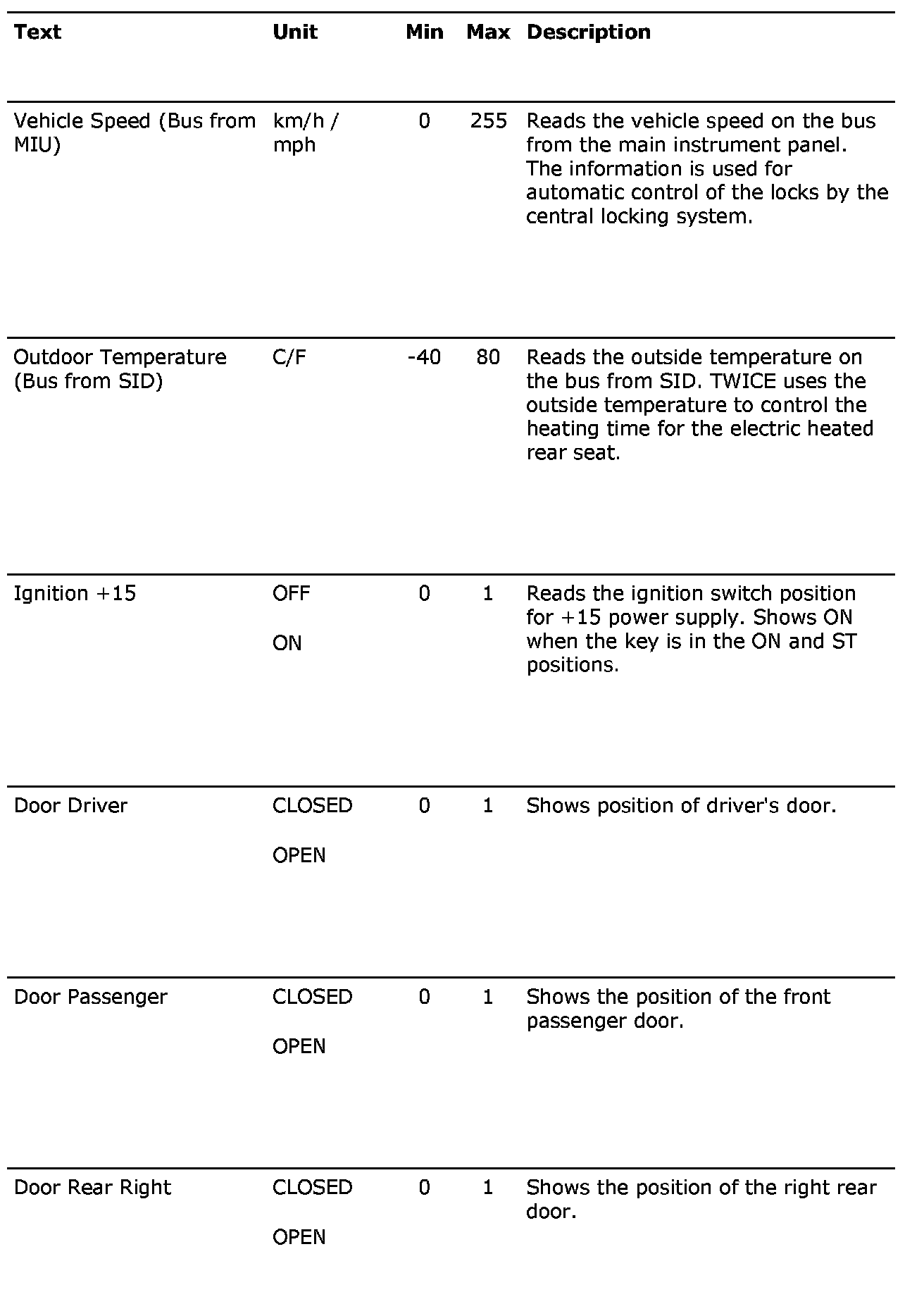 Menu Read Values