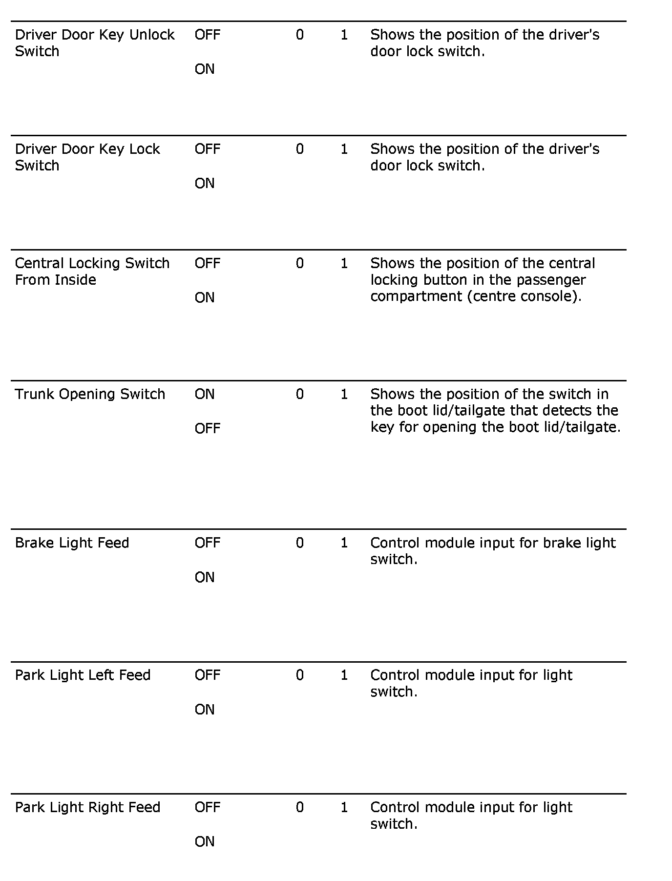 Menu "Read Values"