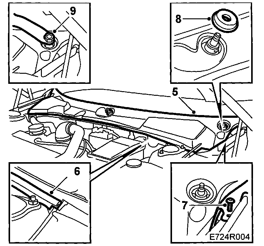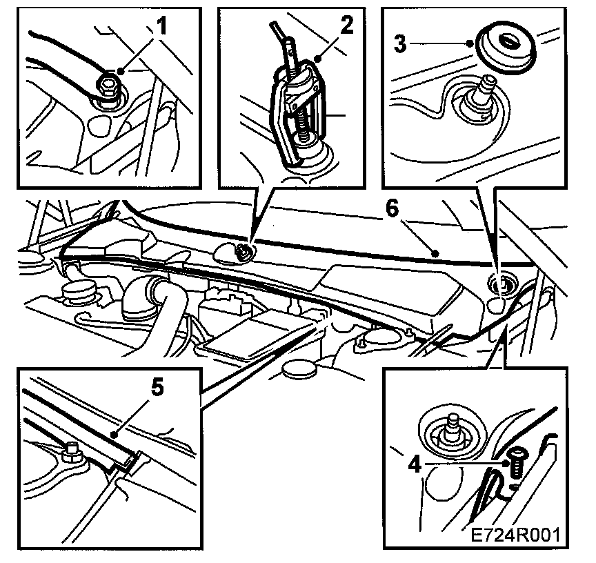 6. Remove the windscreen cover by grasping the front edge and lifting upward/forward. Be careful with the bonnet release wire on the left-hand side.