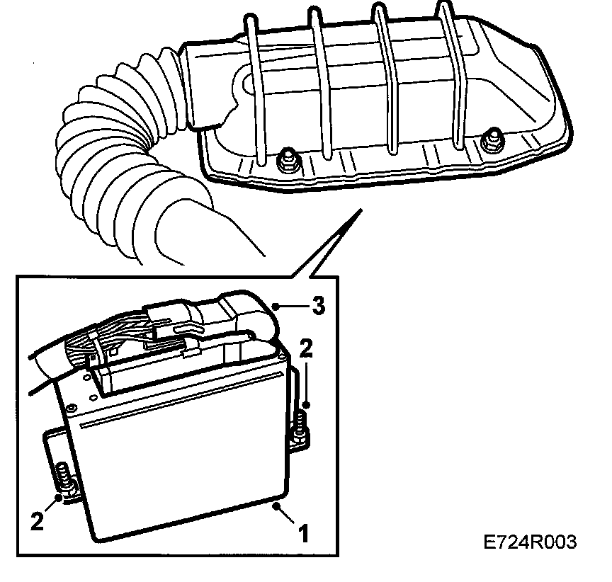 8. Tilt up the cover and unplug the control module multiconnector by releasing the catch on the right.