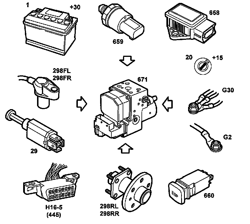 ^ Yaw rate sensor, lateral acceleration sensor (658)