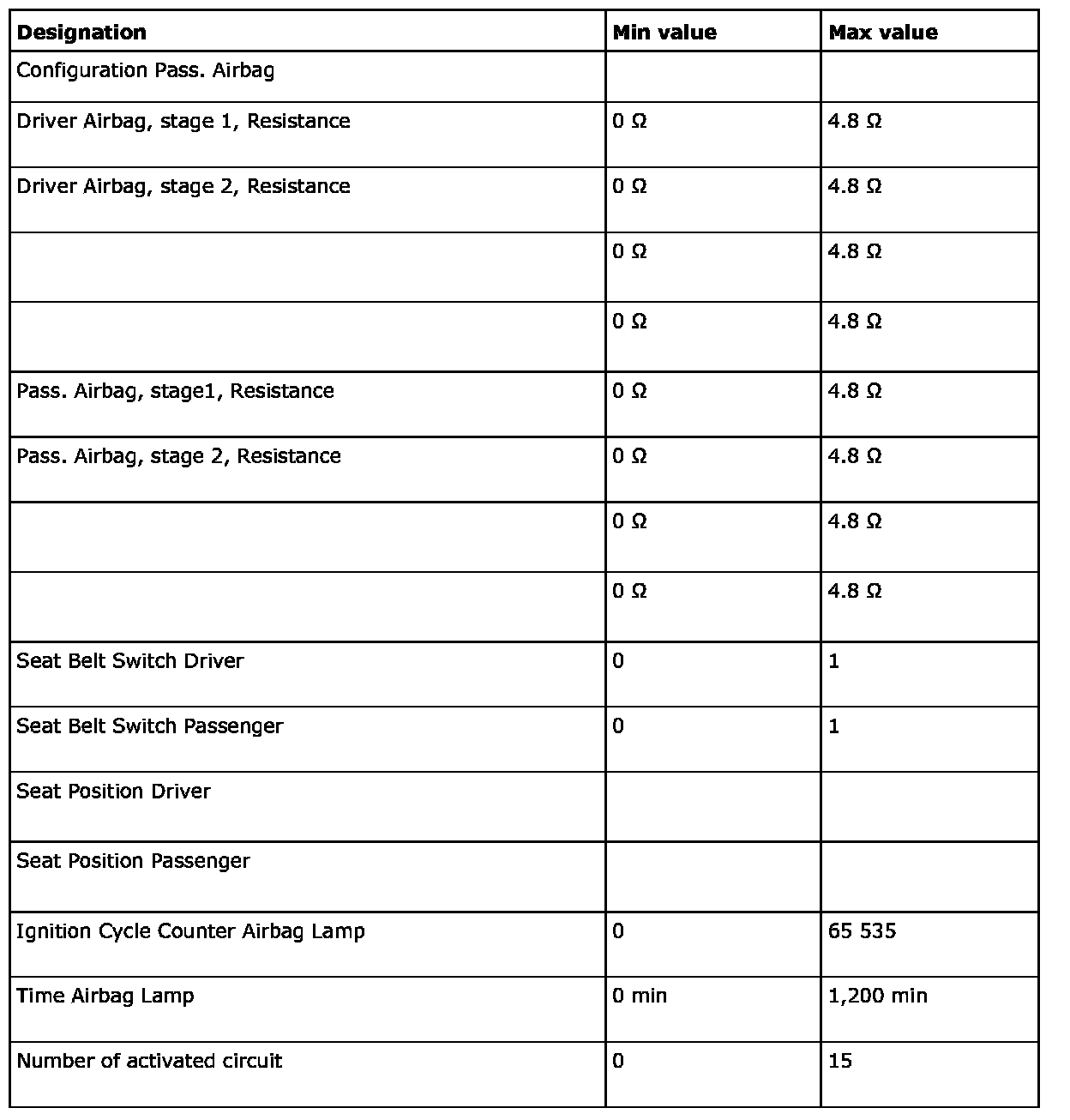 The following table indicates the values for measuring SRS levels. The diagnostic tool should be used for measurement.