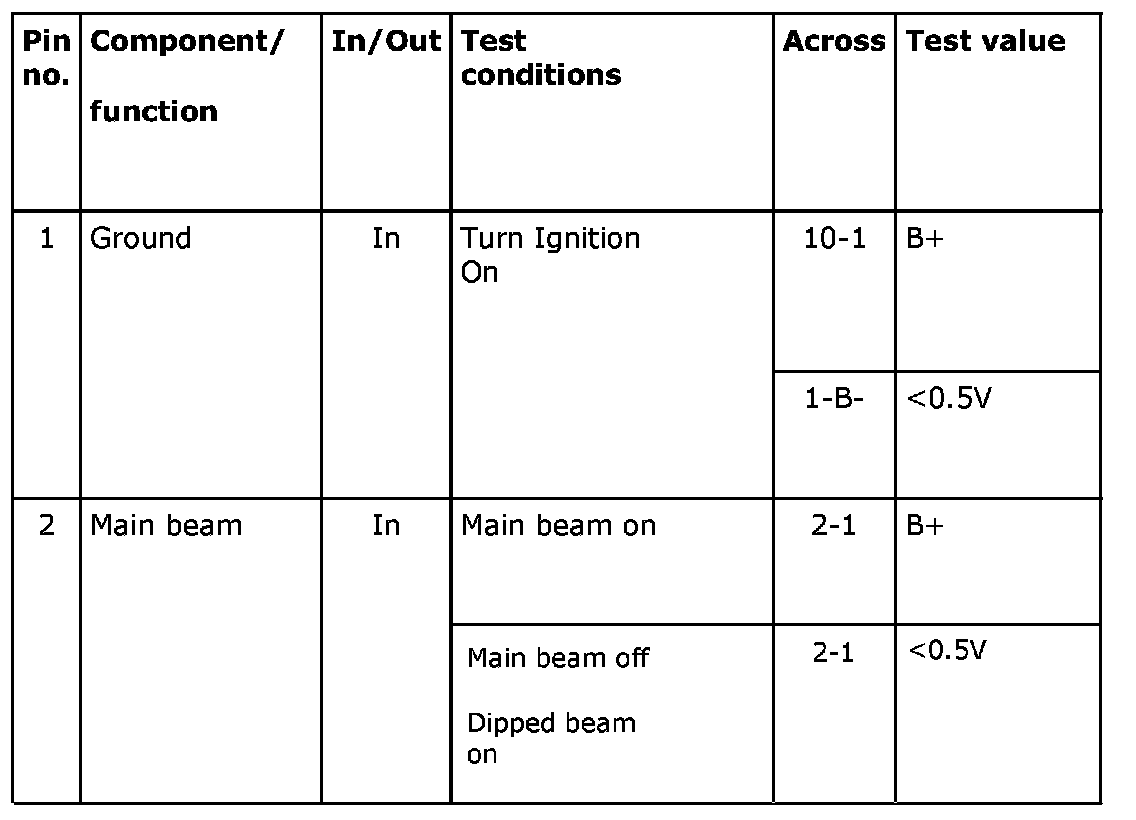 ^ If a reading is incorrect, consult the wiring diagram to trace the leads, connectors or components which should be checked more thoroughly.