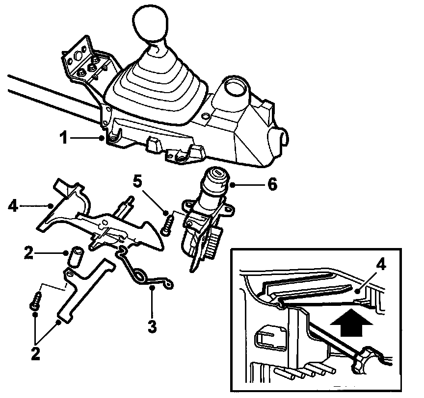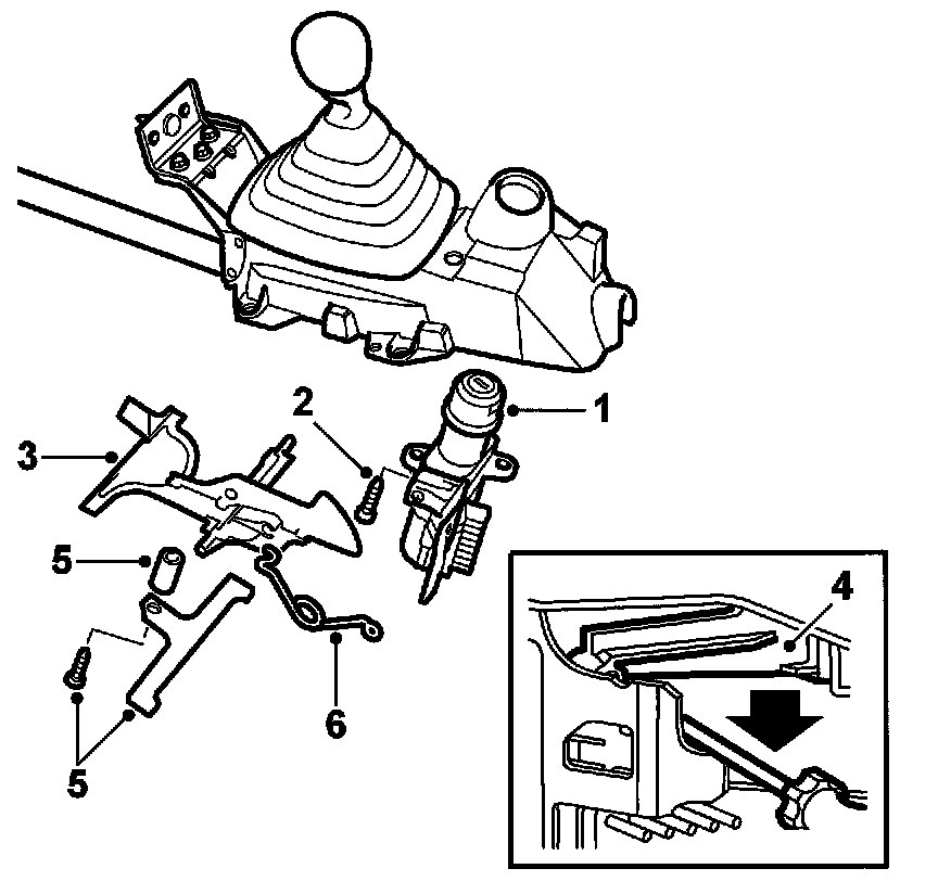7. Adjust the position of the lock plate with the screw on the lock plate holder so that it is level with the lug in the gear lever housing.