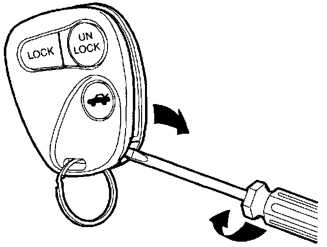 NOTICE: If the transmitter(s) won't work, perform the "RKE SYSTEM CHECK" before replacing the battery. Also, before replacing the battery ill the transmitter(s), make sure that the battery is touching both the negative and positive contacts inside the transmitter(s).