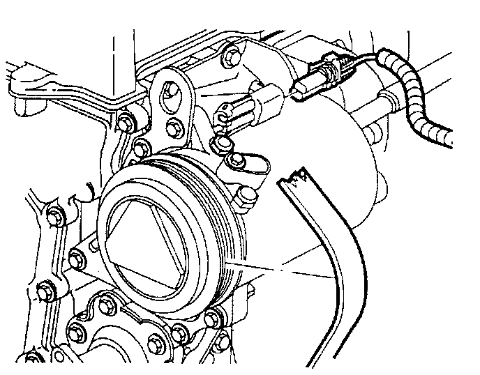 3. Remove accessory drive belt from compressor clutch pulley by rotating belt tensioner clockwise.