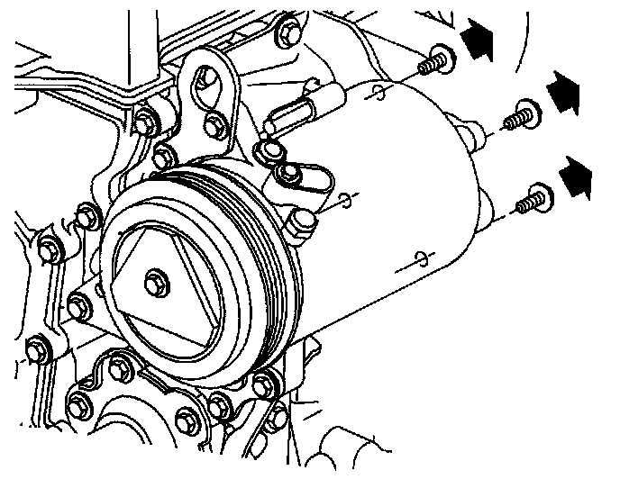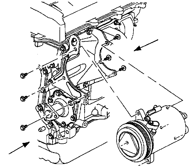 1. Install compressor to front bracket with three bolts. Finger tighten only.