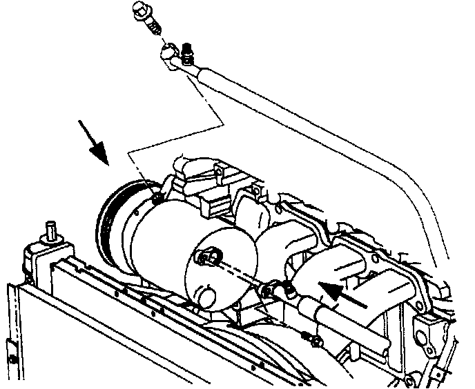 4. Install hoses to the compressor low and high side ports. Tighten bolts to specifications.
