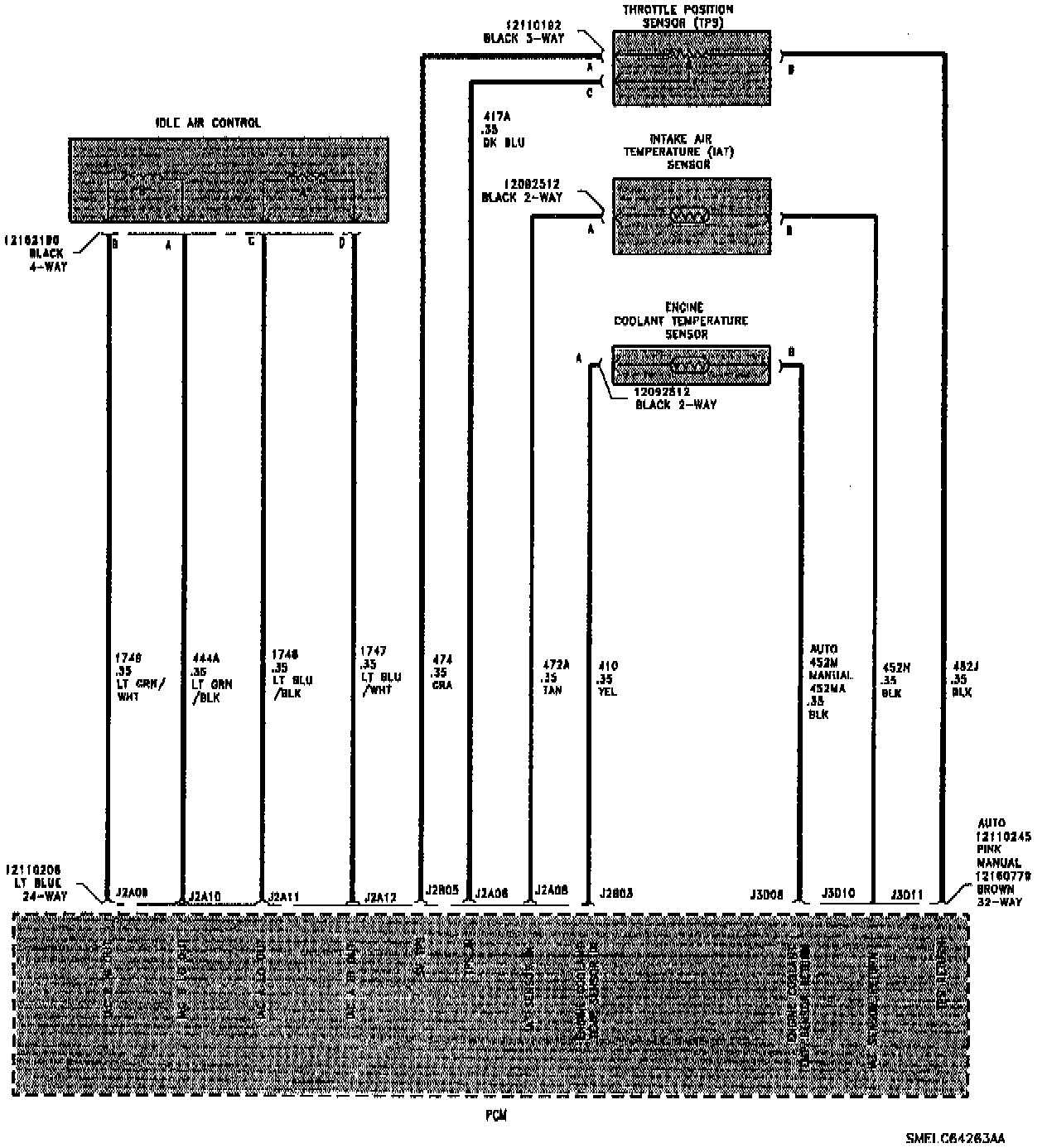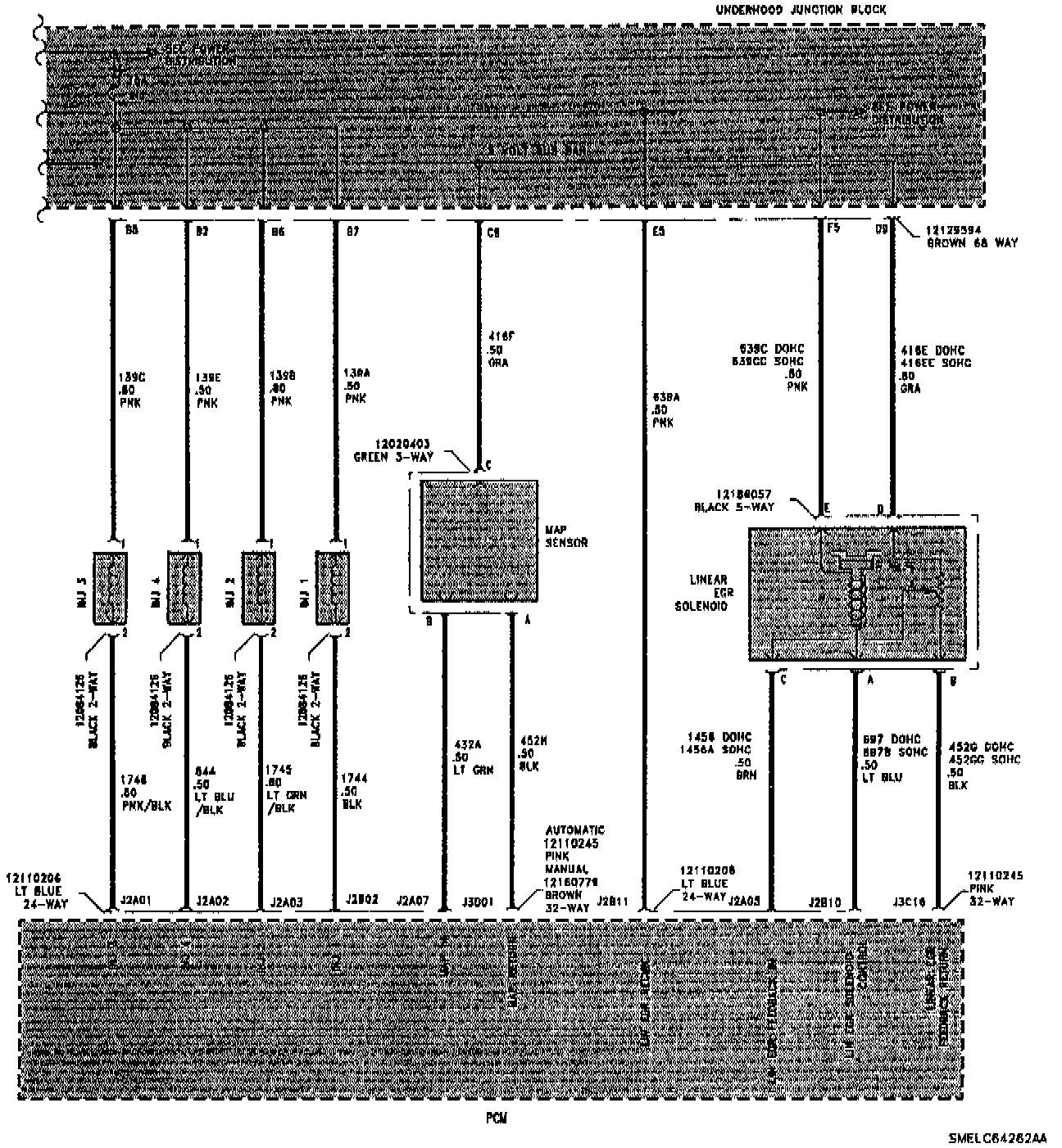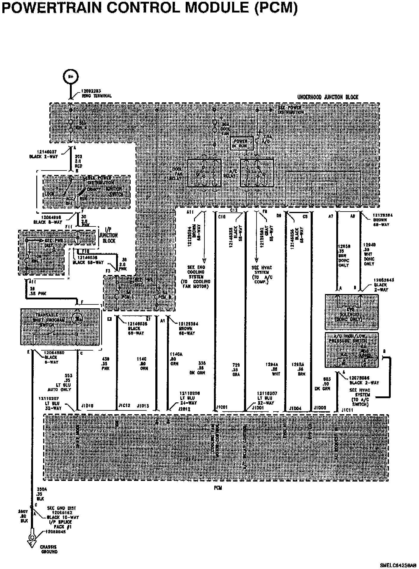 The first edition of the "1996 Electrical Service Manual" was published with some omissions in the electrical schematics of the "Powertrain Control Module (PCM)" section. This bulletin provides complete electrical schematics for the 1996 PCM. This information will be included in the second edition of the "1996 Electrical Service Manual" which is expected to be printed in late 1995. Additional diagnostic information for the PCM can be found in the "1996 Powertrain Controls Service Manual."
