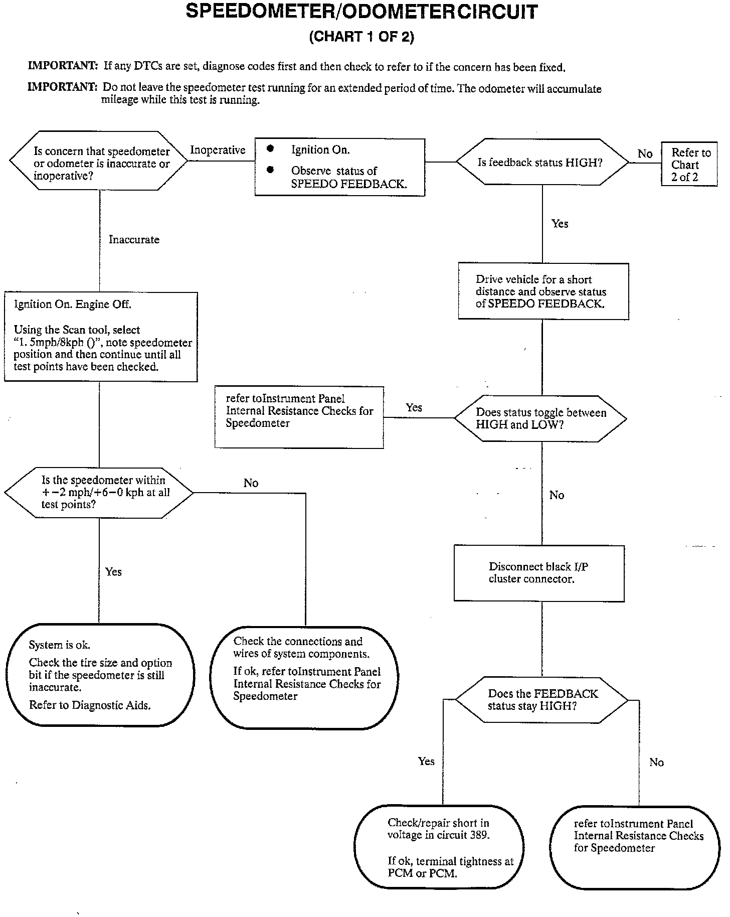 NOTE: Do not leave the speedometer test running for an extended period of time. The odometer will accumulate mileage while this test is running.