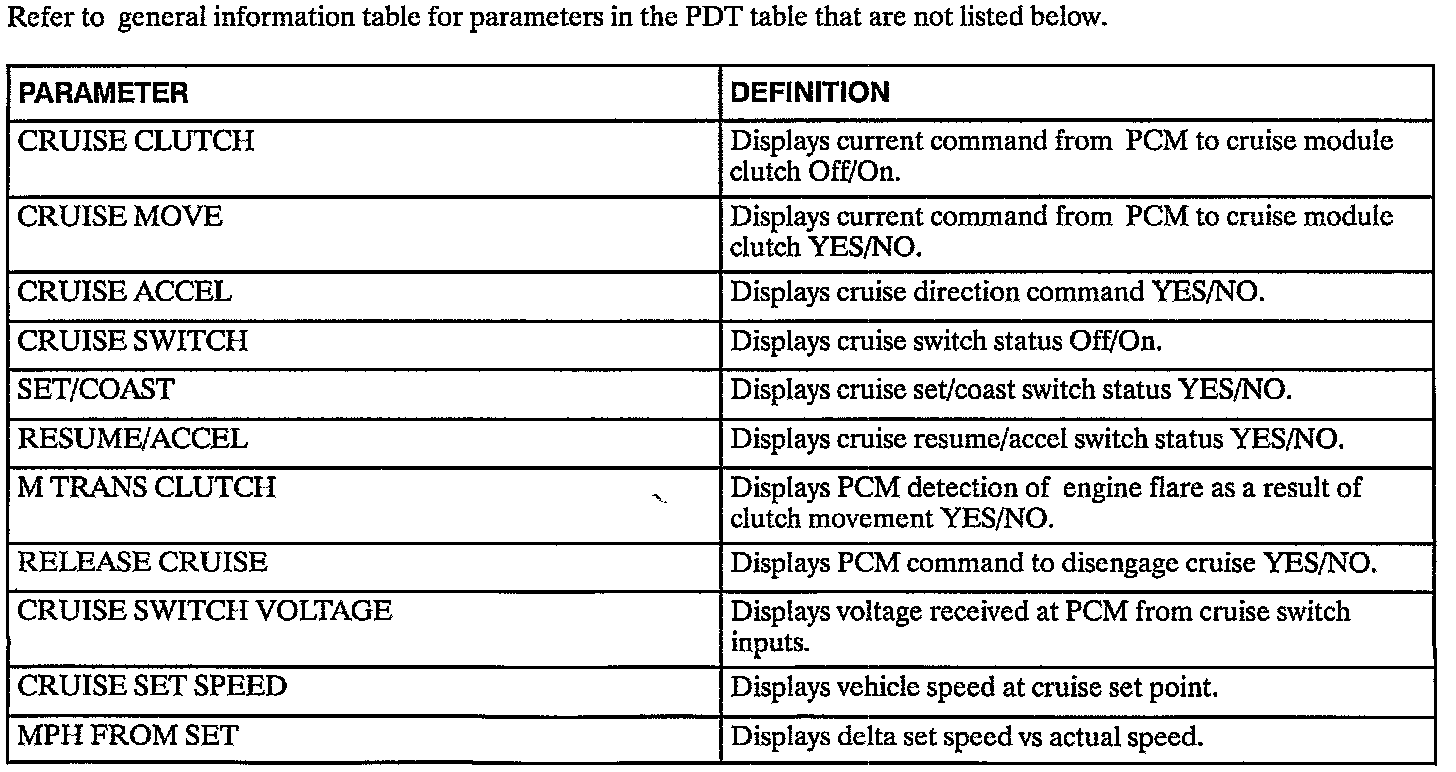 Cruise Control Table