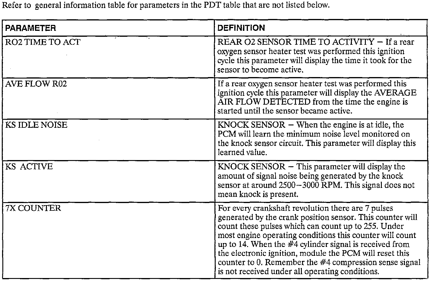 Engine Sensors Table