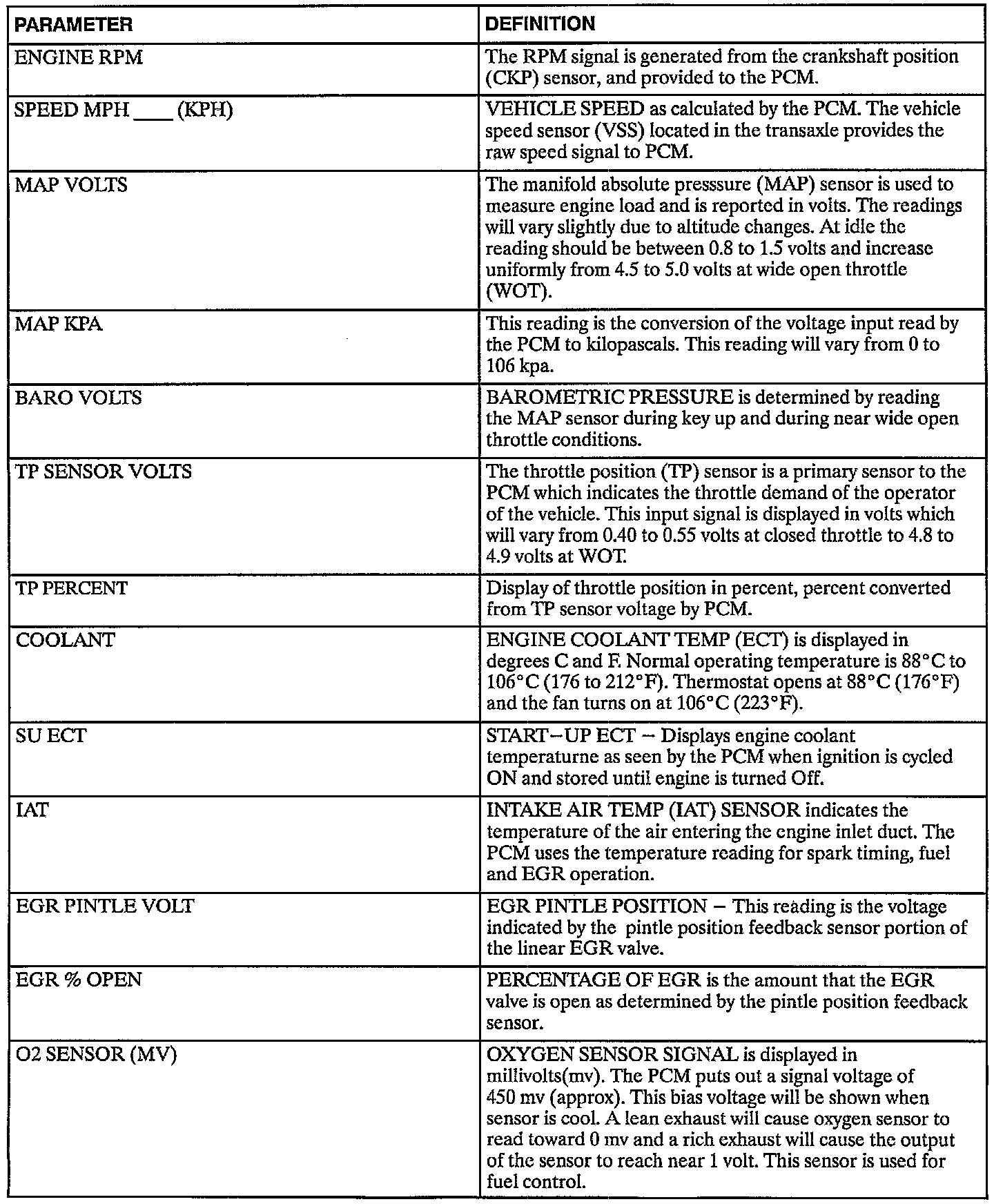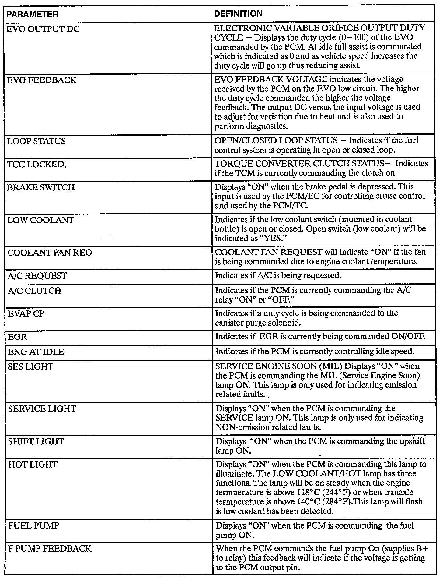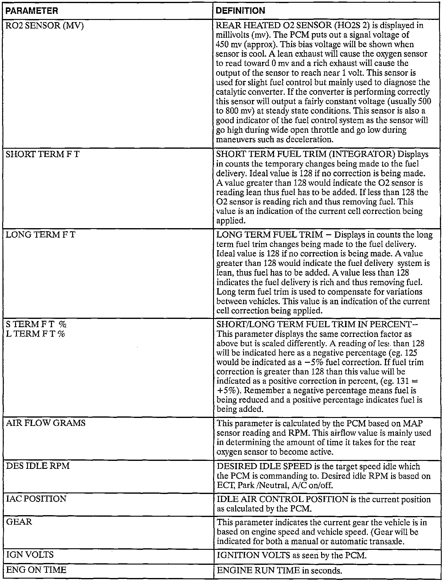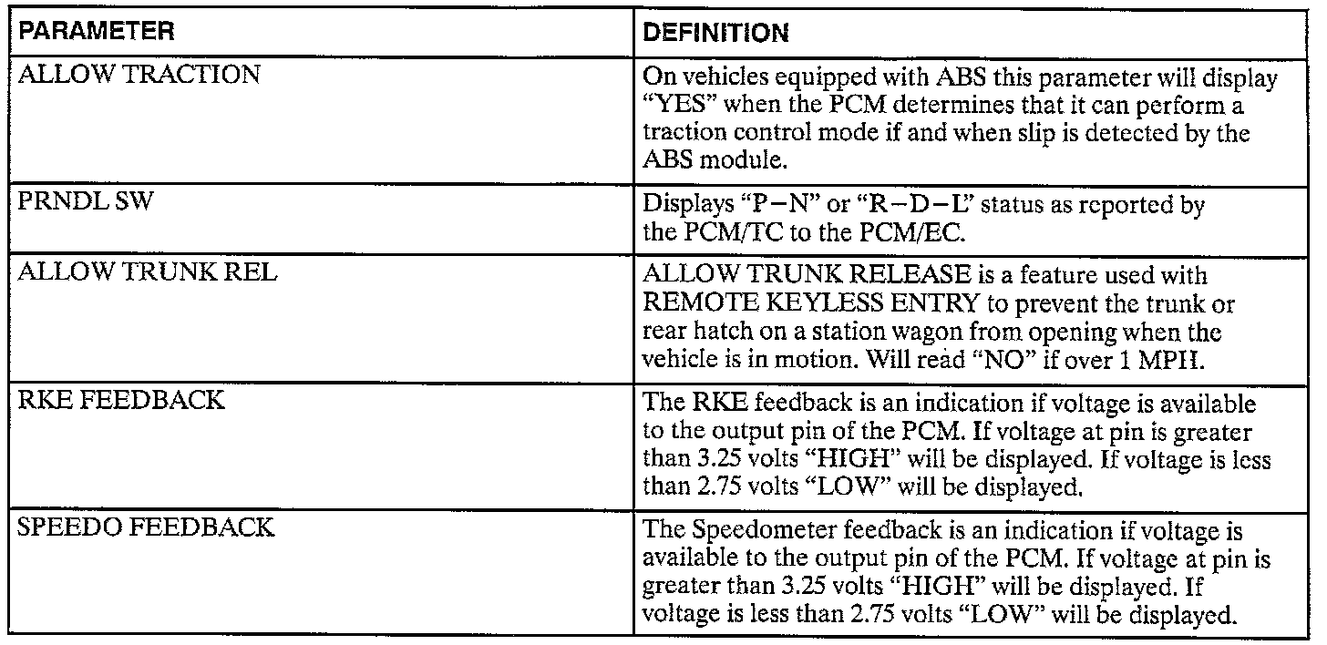 General Information Table Scan Tool