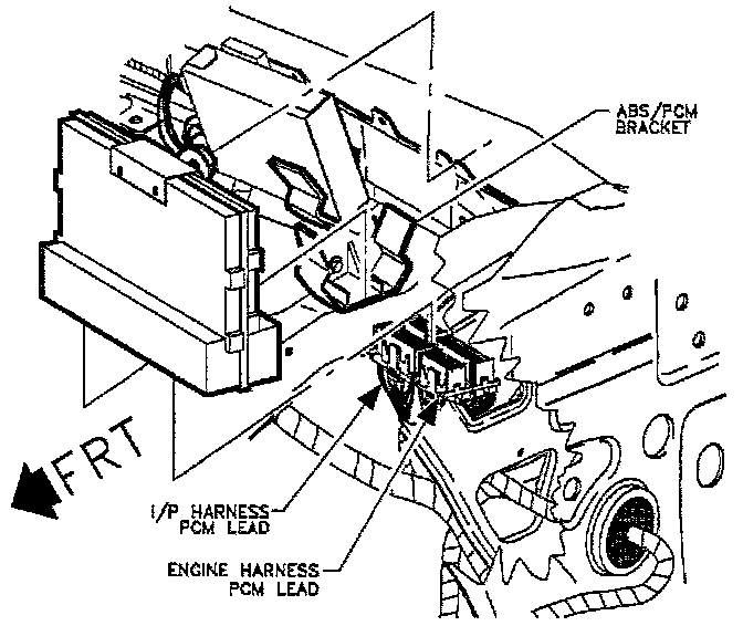 9. Loosen PCM attachment out at cross car beam and lift PCM upward (towards windshield) to disengage PCM from ABS/PCM bracket.