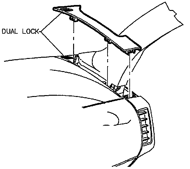 6. Lower I/P upper trim panel, making sure I/P upper trim panel alignment tabs interlock with windshield garnish slots (SL/SW only).