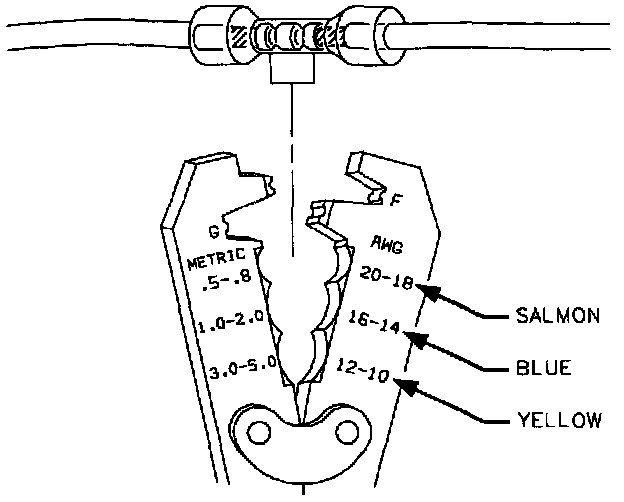 2. Determine proper sleeve for gage of wire. Position stripped ends in sleeve until wires hit stop.