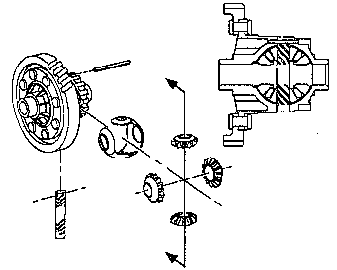 6. Rotate the pinions and thrust liner into the housing together until they line up with the pinion shaft bore in the housing. Check that side gears are in proper location.