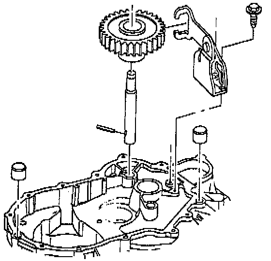 9. Tap reverse idler gear shaft roll pin into reverse idler gear shaft and install into clutch housing.