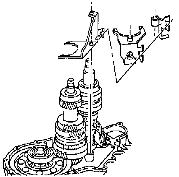 11. Install reverse shift lever assembly with the reverse idler gear setting in the fork part of the lever.