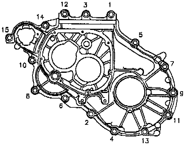 NOTICE: Make sure the shift housing is completely down on case before installing bolts. Torquing bolts on a misaligned housing will damage the case.
