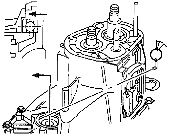 20. Install oil trough in pocket of clutch housing next to reverse shift lever.
