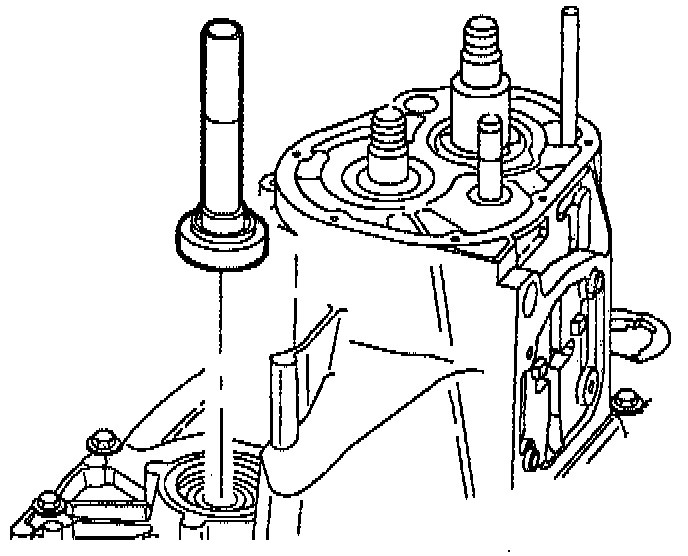 NOTICE: The clutch housing must be supported from underneath when pressing in the output shaft bearing. If the clutch housing is not supported, the housing may collapse.