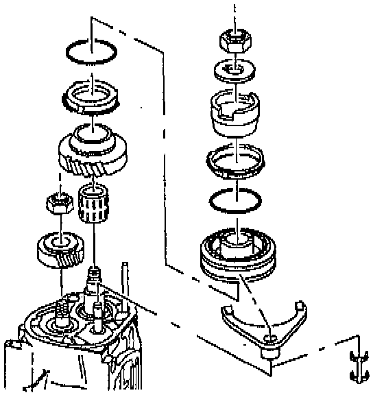 23. Lubricate differential and shaft ball bearings, shift fork shaft, and reverse idler shaft.