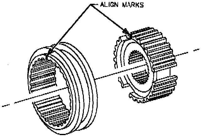 IMPORTANT: When installing synchronizer hub-and sleeve, make sure alignment marks face up.