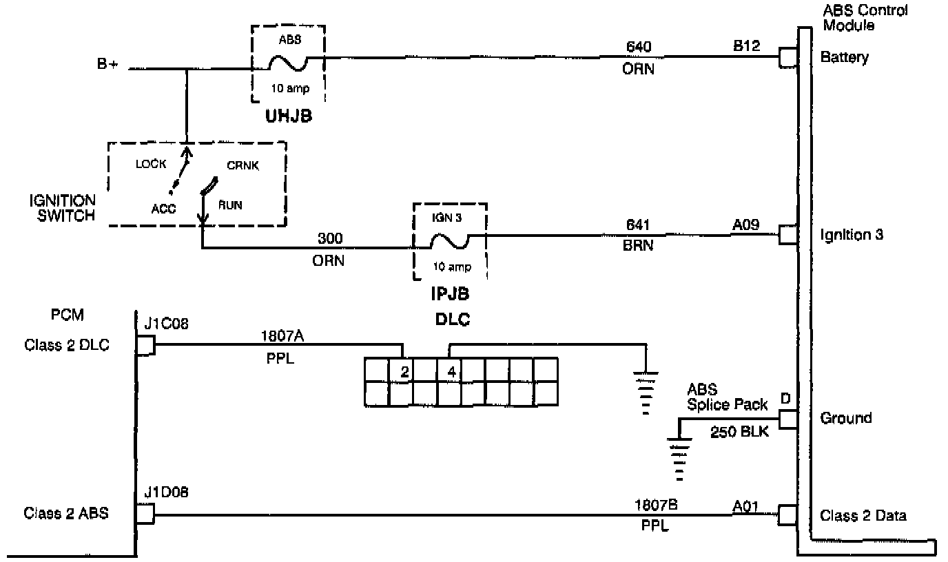 If the Scan tool cannot communicate with the ABS control module or the PCM, check the data link connector (DLC) ground circuit for an open.