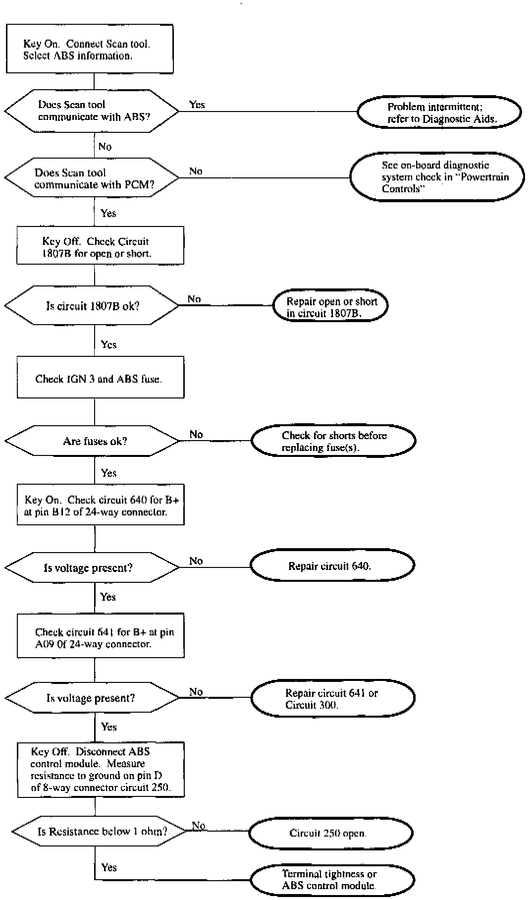 Off board diagnostics should be able to communicate with the ABS control module whenever the key is in the ON or RUN position. The ABS control module does not flash codes, so a Scan tool must be used to view serial data information.