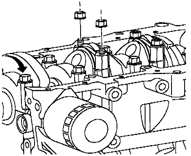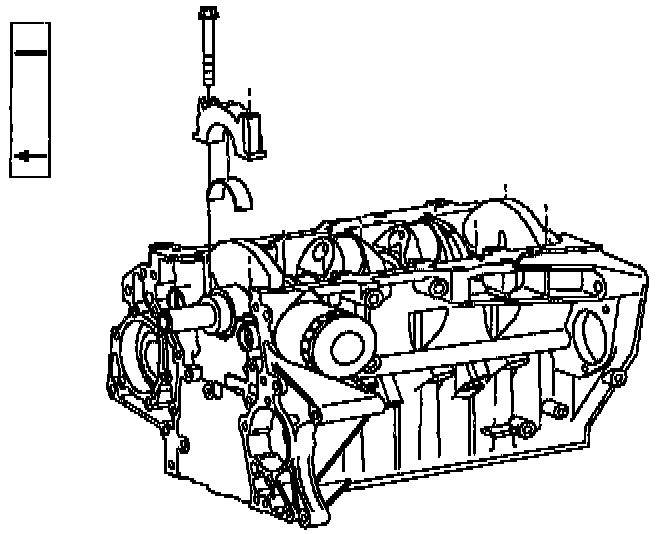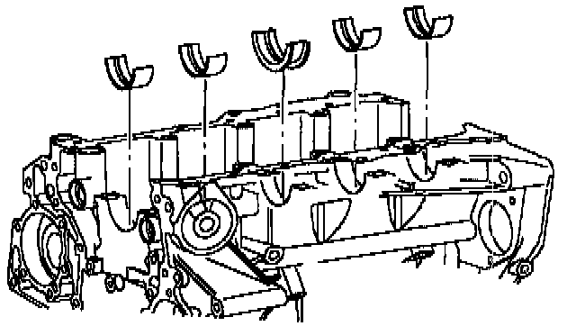 IMPORTANT: Bearing caps are numbered 1-5 and have an arrow that points toward the front of the engine. No. 1 cap is at the front of the cylinder block.