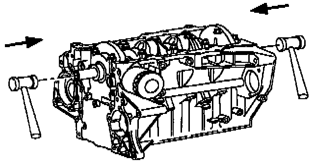 NOTICE: Engine block require the location dowel pins for the front cover, cylinder head, rear crankshaft seal carrier, and transaxle be installed with a brass driver. Dowel pins are installed until they bottom out in the cylinder block.
