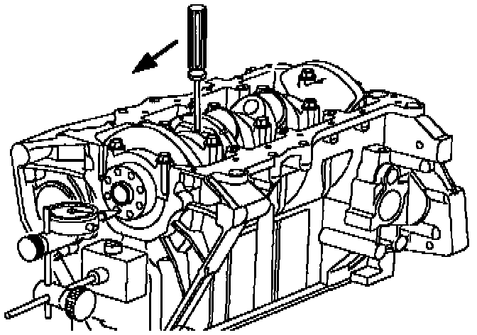 b. Using a rubber mallet, rap the crankshaft rearward, then forward in the cylinder block: to align the thrust bearing.