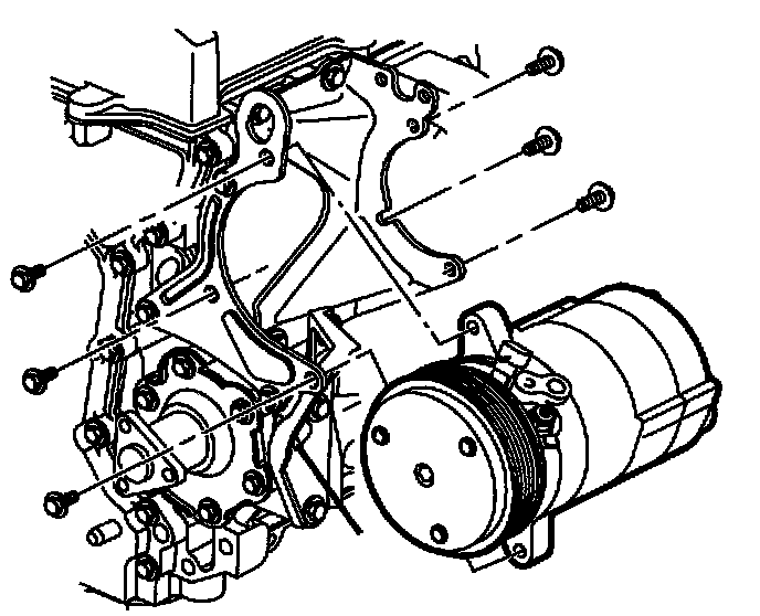 1. Install compressor to front bracket with three bolts. Finger tighten only.