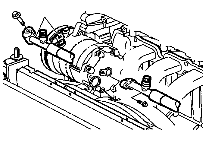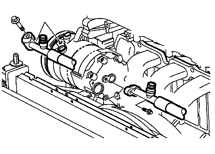 4. Install hoses to the compressor low and high side ports. Tighten bolts to specifications.