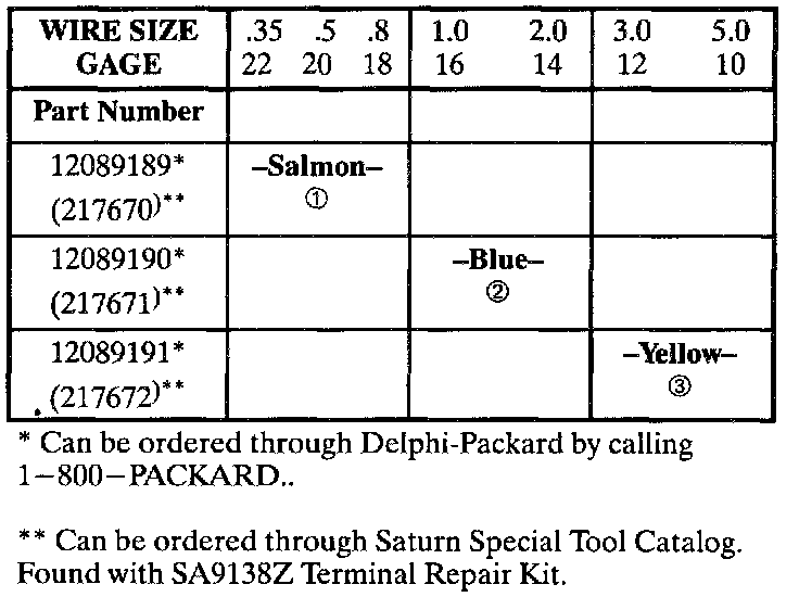 With the low current and voltage wires in the Saturn vehicle, it is best to use approved Packard Electric Crimp and Seal Splice Sleeves (or equivalent)