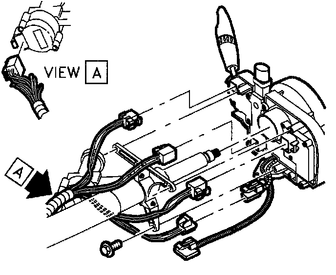 7. Disconnect ignition switch electrical connector at right steering column upper support bracket.