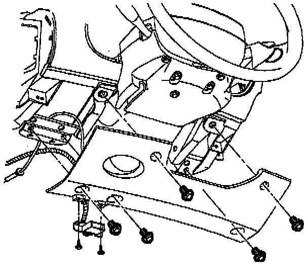 10. Remove steering column lower support bracket nuts and bolts.