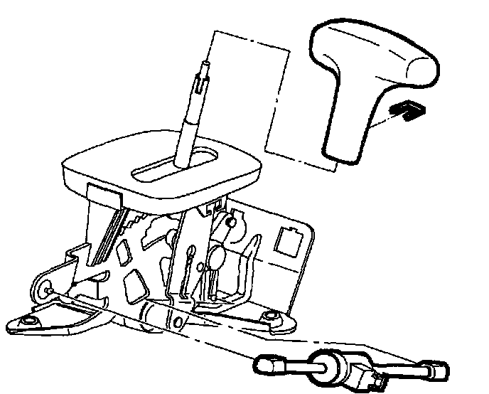 13. Using a screwdriver, remove control lever knob assembly retainer. Remove control lever knob assembly.