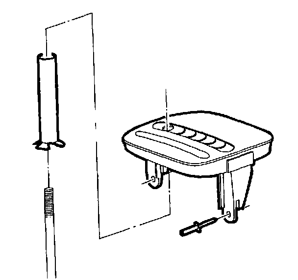 7. Depress the two tabs on the end fitting of park lock cable assembly and remove from control base assembly.