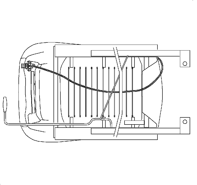 7. Route the lumbar cable assembly forward between the seat cushion and the riser bar.