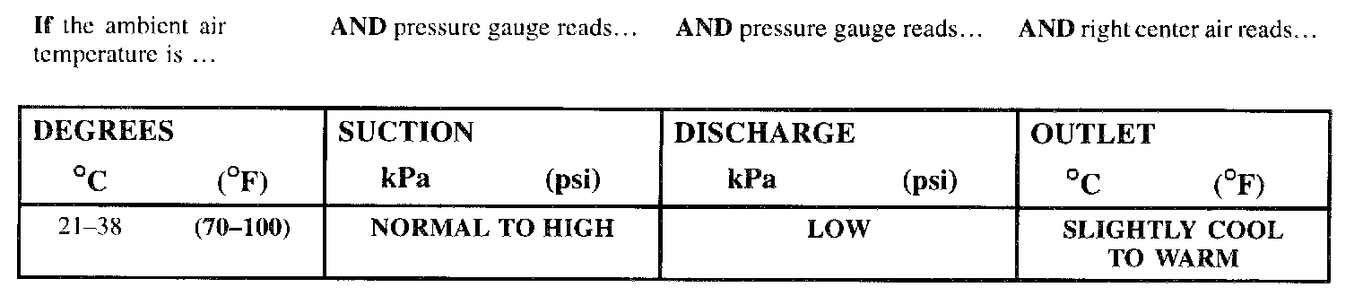 ^ Pipe temperatures will vary with ambient air temperature and the amount of charge lost. Suction and outlet temperatures will be warmer as more refrigerant is lost or ambient air temperature increases.
