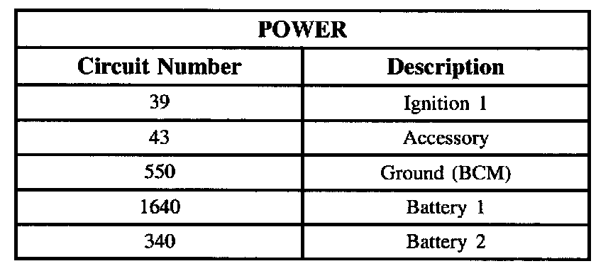 Battery voltage is supplied to the BCM by circuit 1640. This input is internally monitored by the BCM for proper operating voltage. The proper operating voltage range is from 9 to 16 volts.