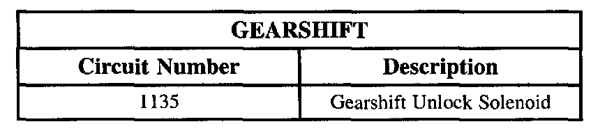 The gearshift unlock solenoid is energized by the BCM switching circuit 1135 to ground. When energized, the gearshift unlock solenoid will allow shifting from PARK. A condition for shifting from PARK is that the foot brake must be applied. The BCM receives this information over the serial data link from the engine controller.
