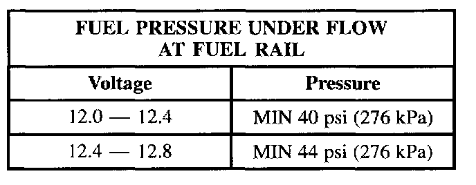 IMPORTANT: Battery must be at a minimum of 12 volts when performing any fuel system test. Charge battery before proceeding if below 12 volts.