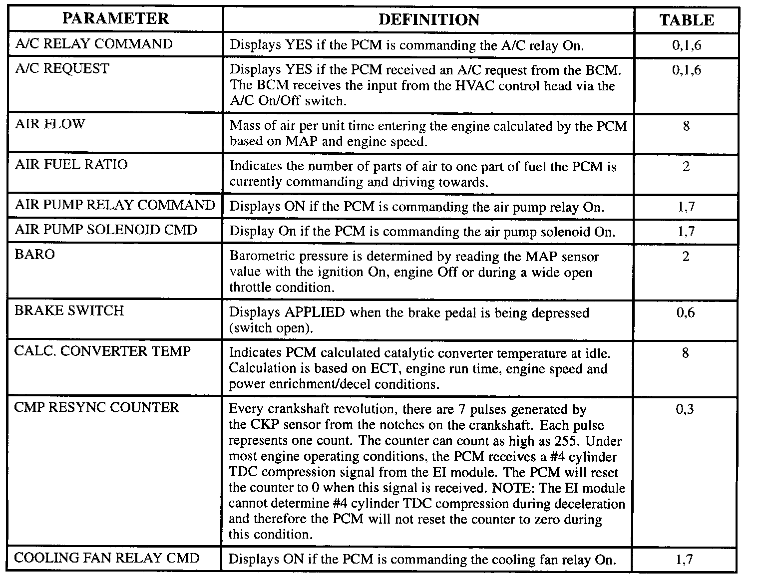 Scan Tool Data, Normal Values and Definitions