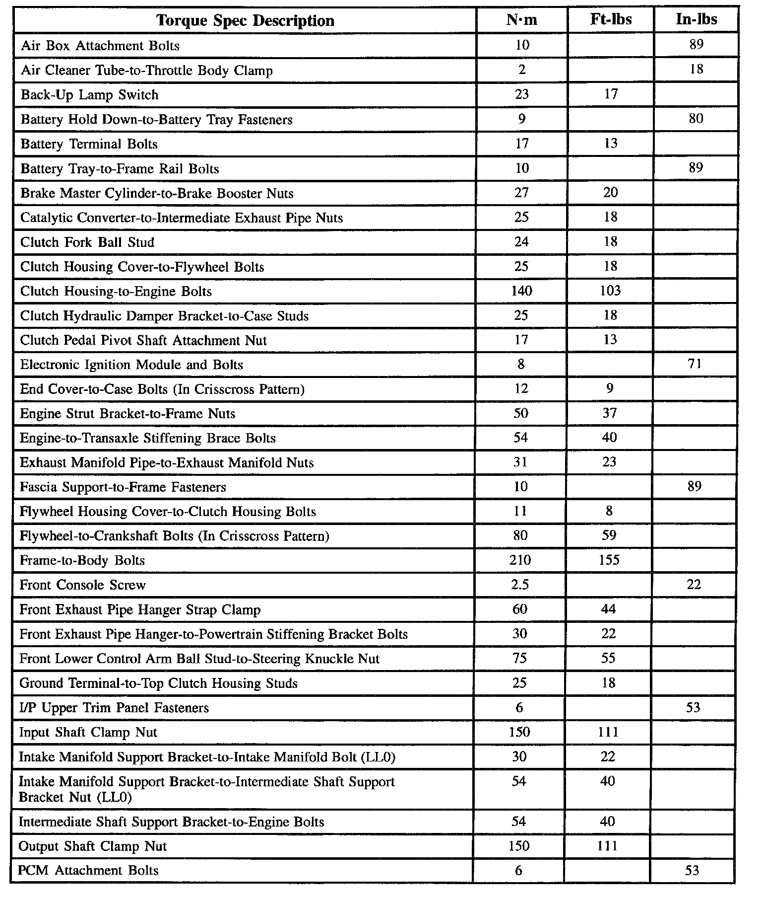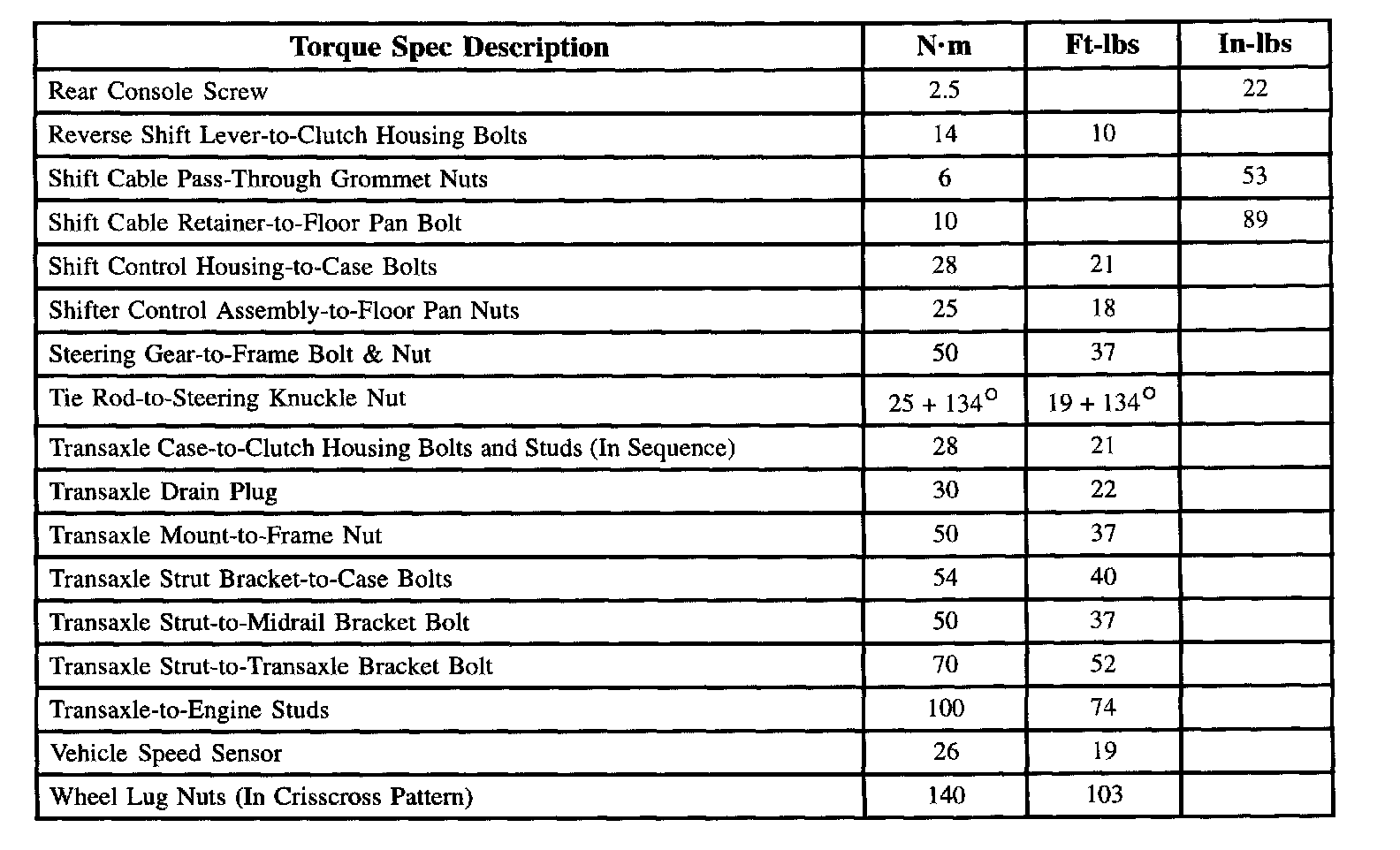 Manual Transaxle Torque Descriptions