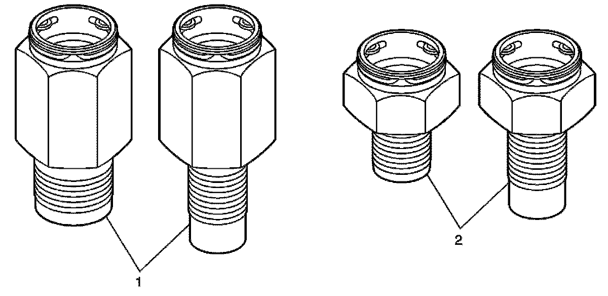 A change to the transmission cooler line fittings was implemented in production on February 1, 2004. The cooler line fittings were changed to a design with a longer lead in pilot (1). The cooler line fittings with the longer lead in pilot will not fit on models built before February 1, 2004.