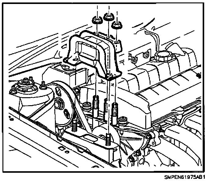 1. Remove two engine mount-to-midrail bracket nuts and discard.