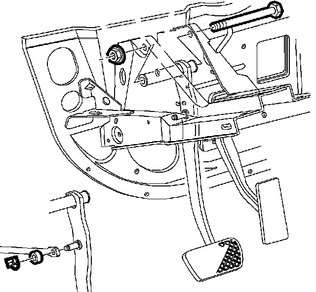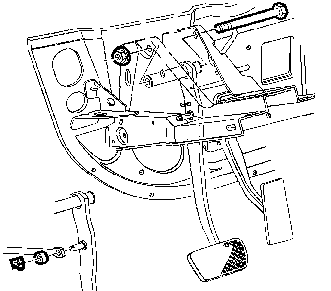 9. Install brake pedal pivot bolt and nut by accessing them through top of instrument panel.
